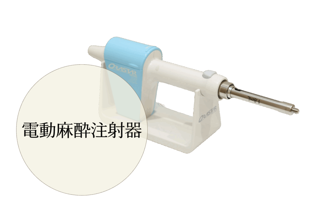 当院では、電動麻酔注入器を用いて麻酔液の注入速度を一定に保つことで、注射時の痛みを最小限に抑えています。また、麻酔前の声掛けや薬剤の事前加温といった工夫も重ね、安心して治療を受けていただける体制を整えております。痛みに敏感な患者さまや歯科治療に不安をお持ちの方も、どうぞご安心ください。
