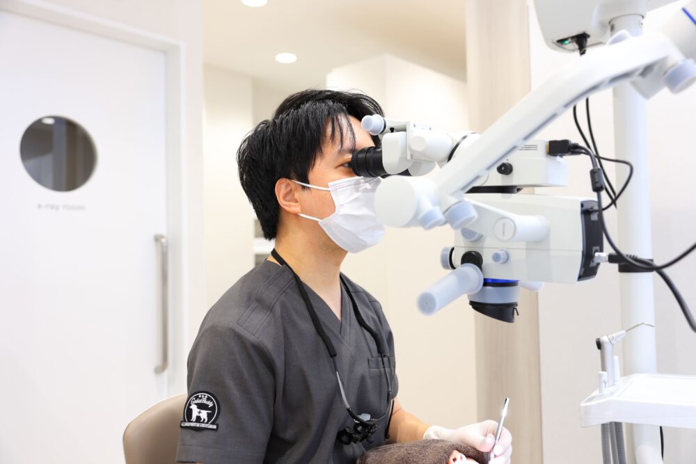 当院では、健康な歯をできる限り残す治療を大切にしています。そのために、むし歯に侵された部分だけを正確に見極める拡大鏡(ルーペ)や、より高精度なマイクロスコープ(歯科用顕微鏡)を用いた治療を行っております。拡大鏡で約3倍、マイクロスコープでは最大20倍まで視野を拡大できるため、肉眼では見逃しがちな初期のむし歯も見つけやすく、削る範囲を必要最小限に抑えることが可能です。