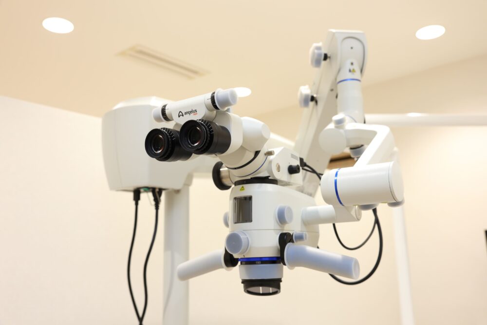 マイクロスコープは、肉眼では見えにくい細部まで拡大して確認できる高倍率の歯科用顕微鏡です。根管治療(歯の神経の治療)やむし歯の取り残し防止、歯の細かな亀裂の確認など、治療精度の向上に欠かせない機器です。