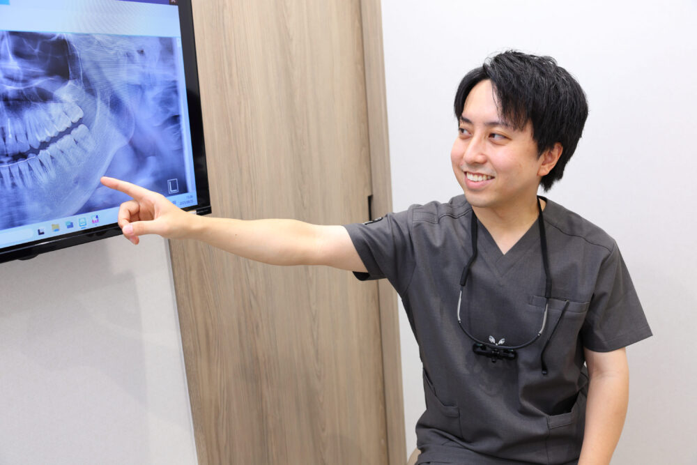 歯周病の有無や歯・骨・歯ぐきの状態を検査し、歯科用CTを用いて顎の骨の厚みや神経・血管の位置まで3Dで正確に把握します。